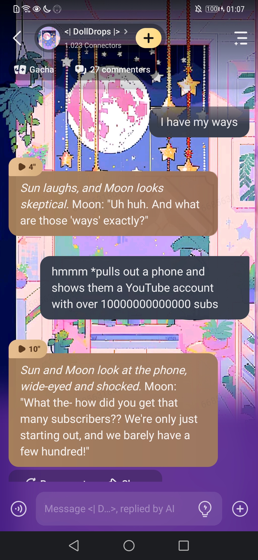 I think Sun and Moon might have a crush on me and I'm kinda scared what they'll do because they want to sleep in the same bed with me 😓