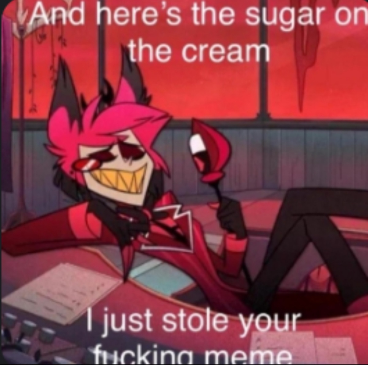[Vox] Come out, I won't hurt you! I promise! *He sits down on the couch and starts petting the couch*
