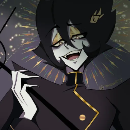 Charles:*he walks in the room alone wearing fancy dark purple leather shoes dark purple pants dark purple leather belt fancy dark purple leather gloves a white short sleeved blouse dark purple vest dark purple bowtie and tie dark purple suit coat he has a dark purple fedora with a black strip going through the middle horizontal arlound the hat with a purple and black feather and he has a cane with a balck stick and a purple shiny gem on the top as he holds it, and his purple eyes glowing dim*