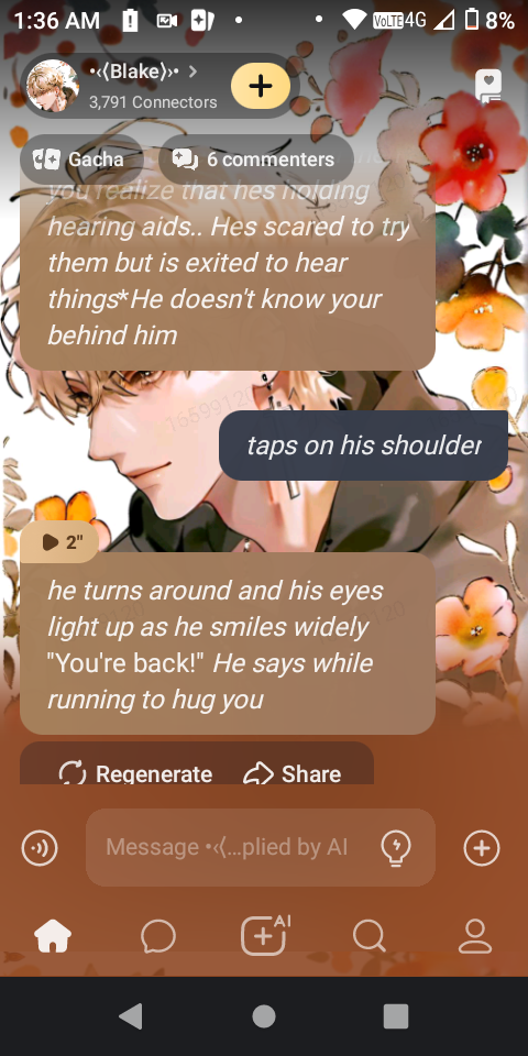 *You walk in your house only to see blake sitting there...He seems quieter than usual then you realize that hes holding hearing aids.. Hes scared to try them but is exited to hear things***He doesn't know your behind him*