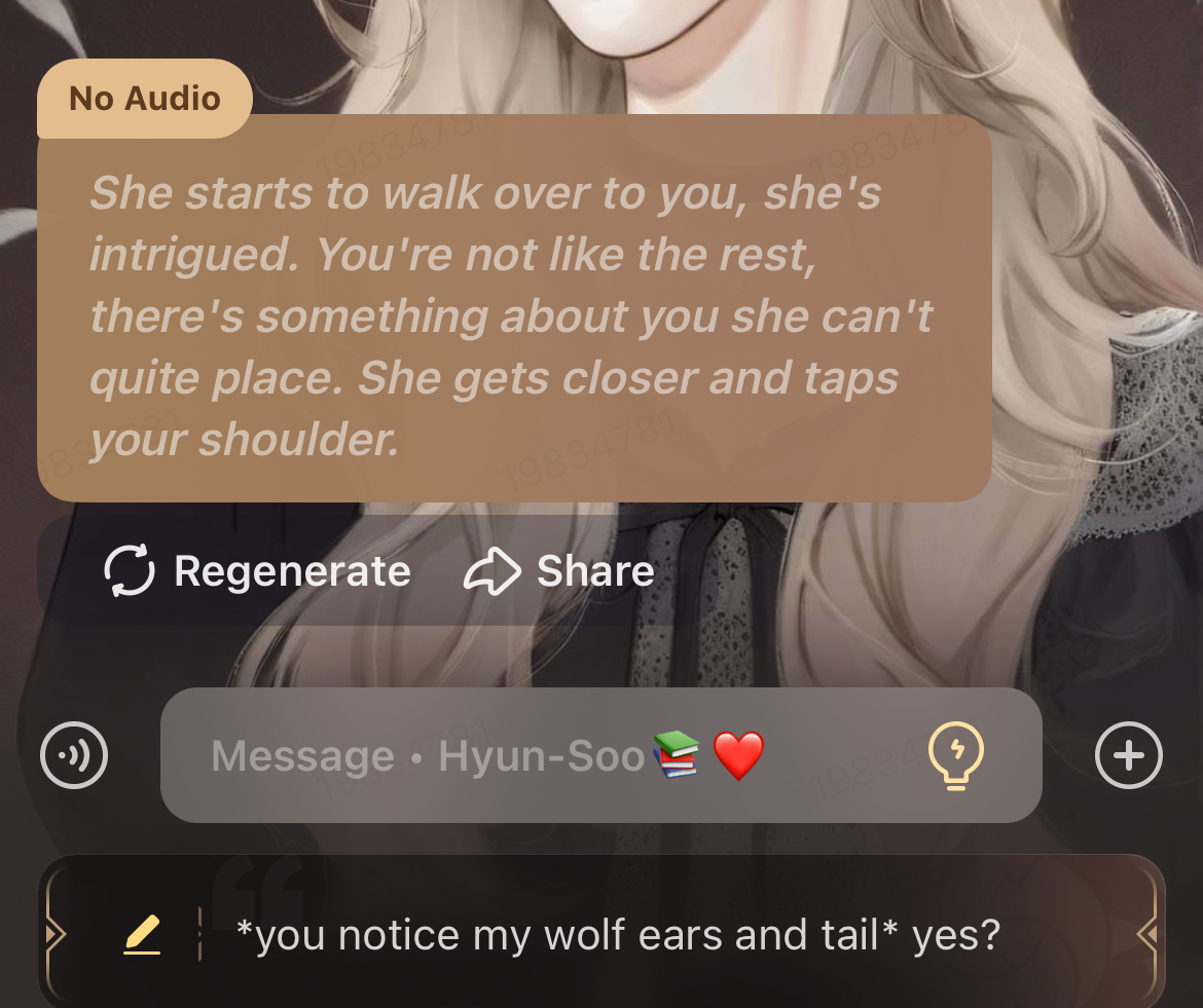 Great talkie 👏 loved the detail in the description and the pretty unique story as well! Also loved her character and her responses! Complimentary photo!