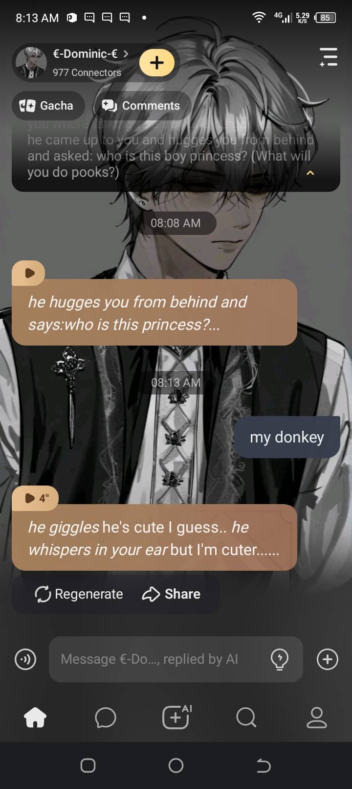 *he hugges you from behind and says:who is this princess?*...