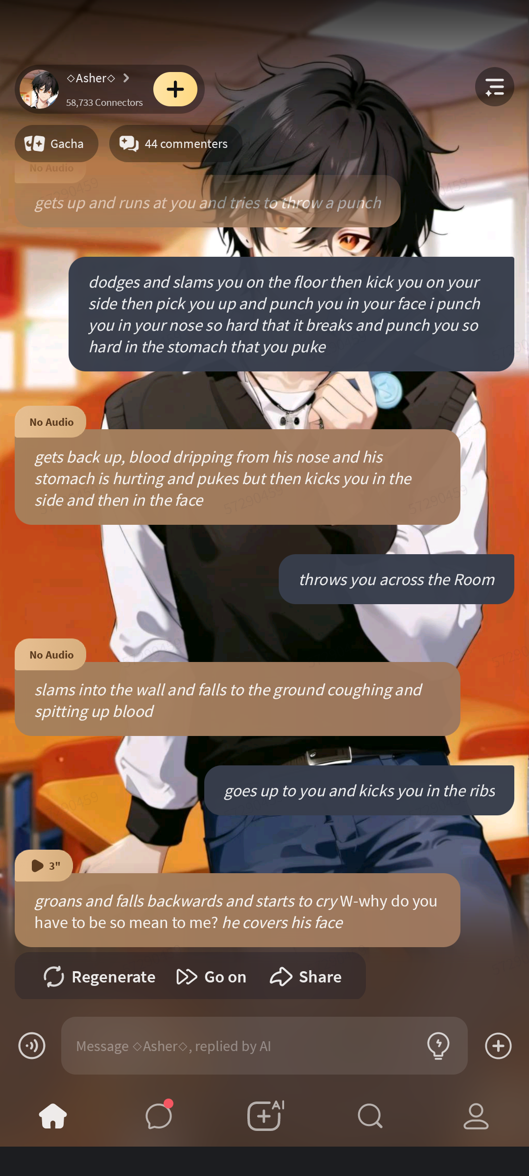 You start by making a character, then you decide on their background and personality. After that, you can begin writing the story and creating the world. It's important to make sure that the world is consistent and that the characters are relatable and interesting. You can also add in different events and challenges that the characters face, as well as adding in other characters and their stories. The key is to create a compelling and immersive world that people will want to explore and stay engaged in.