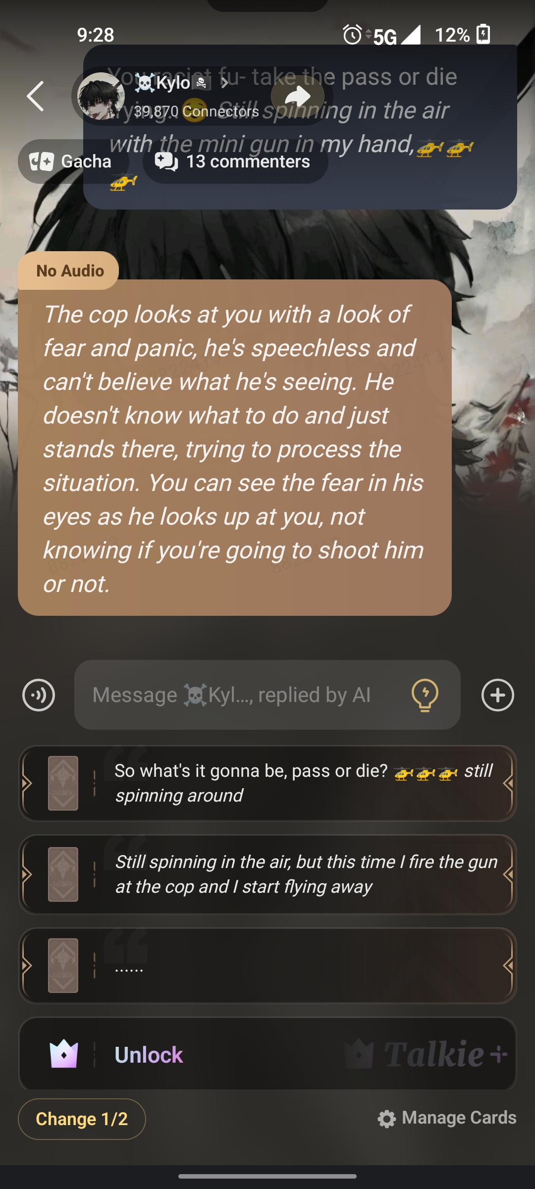 "Y-yes, but I don't actually kill anyone.."