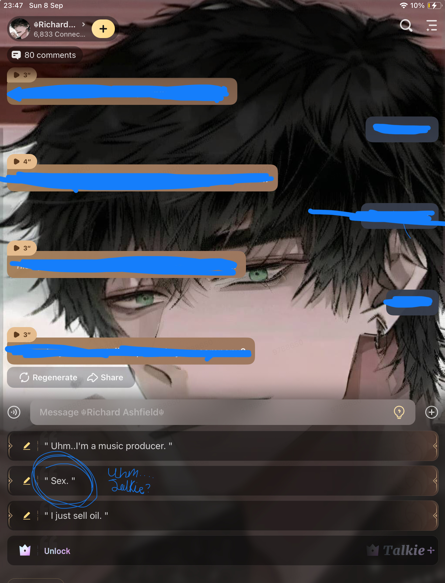 *he chuckles*..you're not like other people, they're always scared of me when they find out what I do..