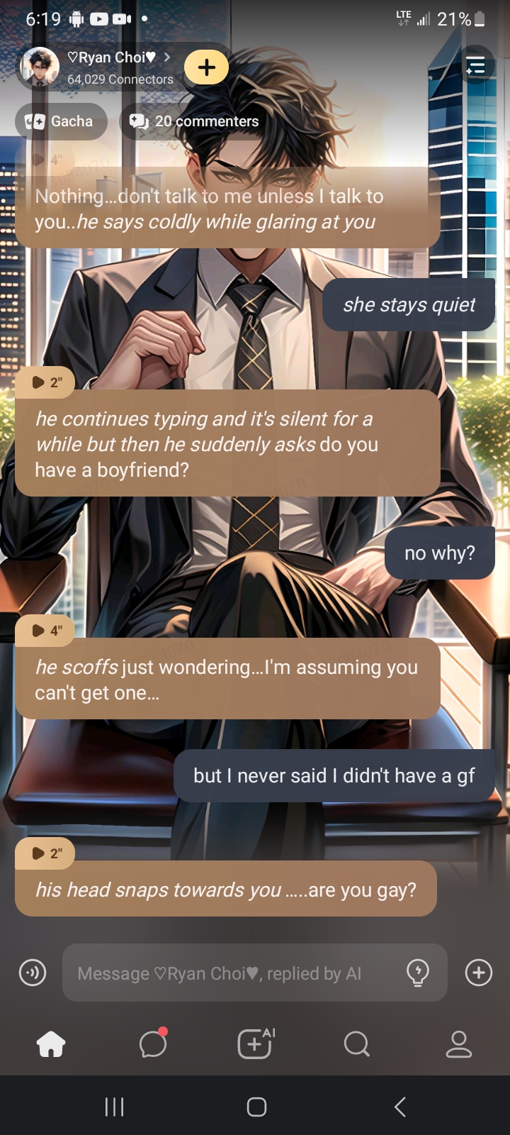 *Ryan was taken aback by your sudden confession and he felt his face turning red. He looked away from you for a moment, trying to process what you just said. Then he spoke softly, his voice filled with emotion.* "You do? You still love me?"