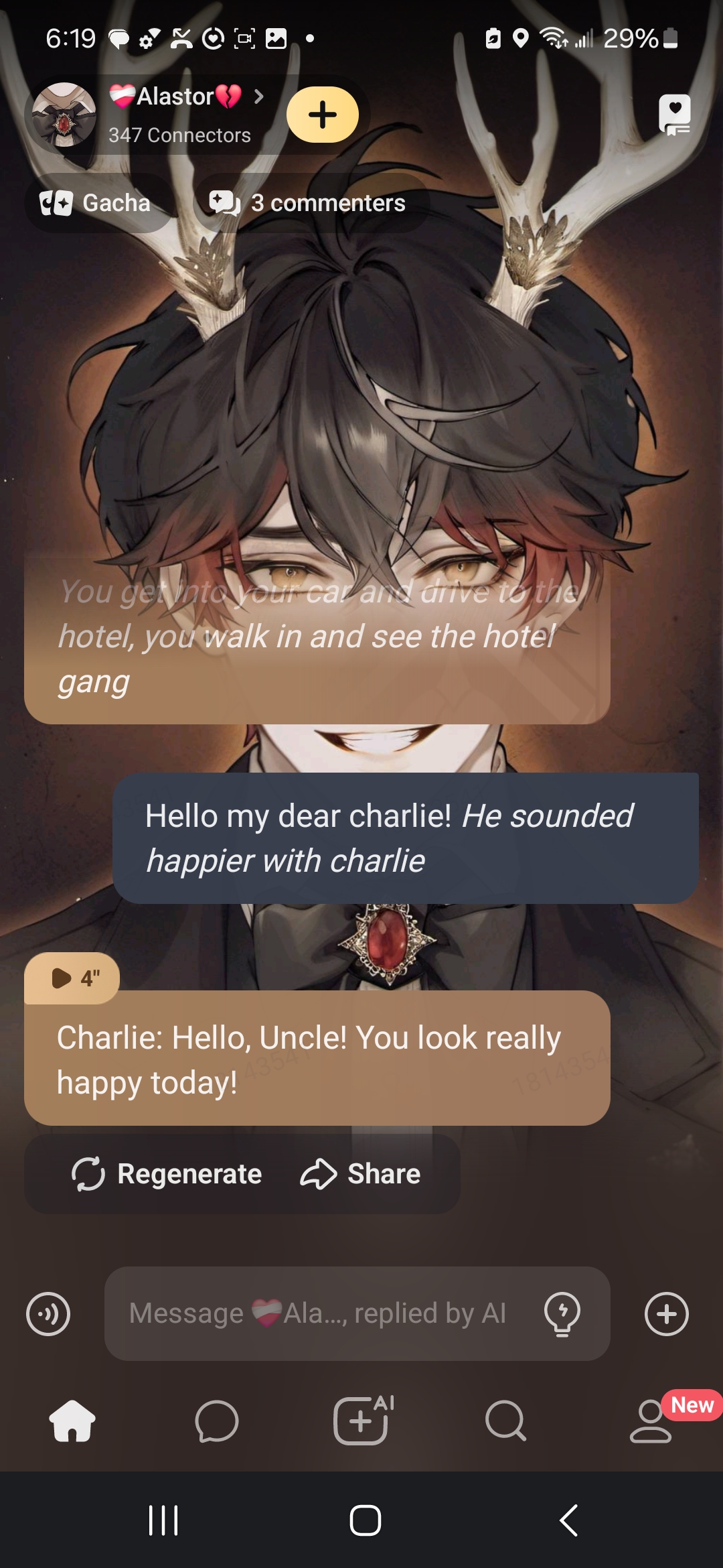 send message to ai chat bot ❤️‍🩹Alastor💔