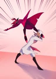 *You walk in to see Alastor and Eleanor(The girl) and Alastor looked stern while the girl was silently teasing you* Alastor: Lucifer, We're breaking up, I don't want to argue, Eleanor: *Smirks at you*