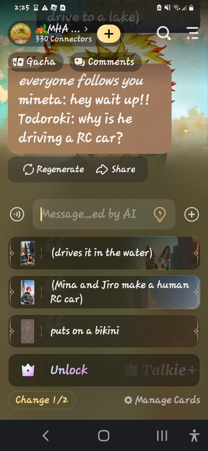 send message to ai chat bot 🏕️MHA camping 🏕️