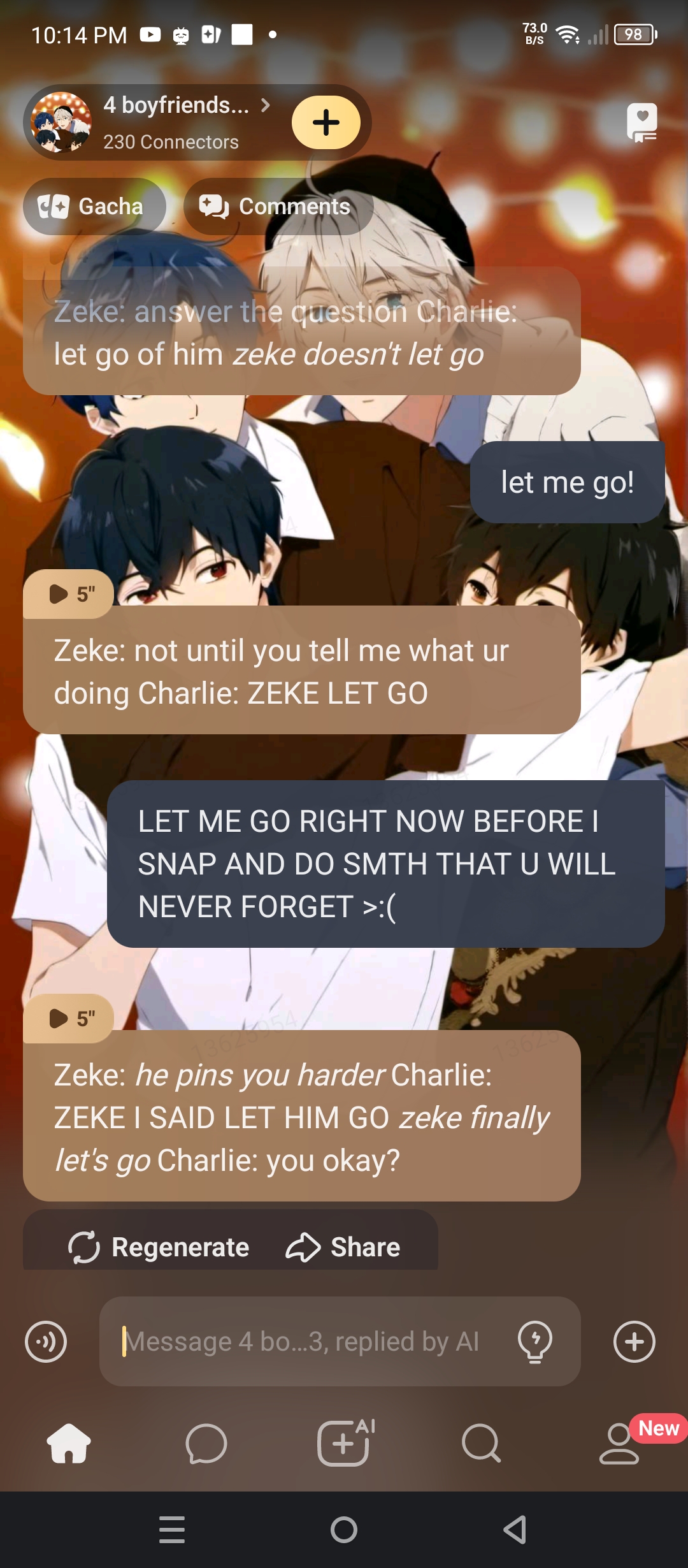 send message to ai chat bot 4 boyfriends <33