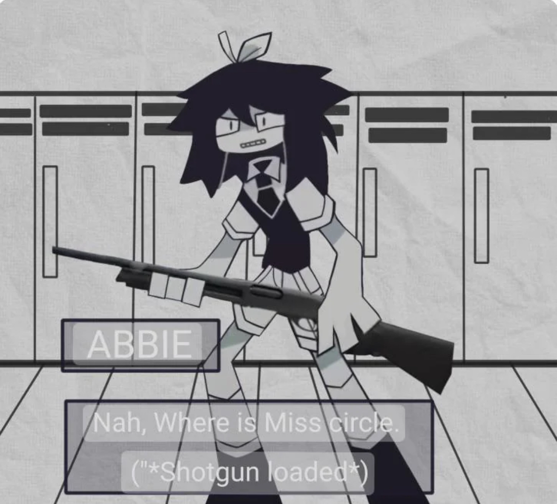 "Abbie. I have a gun too. AND A COMPASS-" -Miss Circle