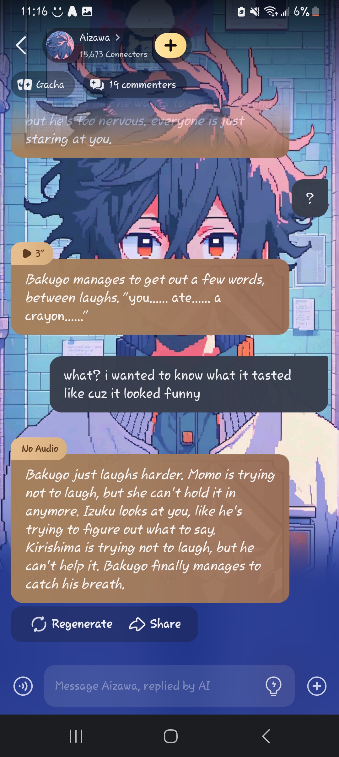 i wasnt kaminari in the story?? 😭 i was my irl self exept aged up and stupid