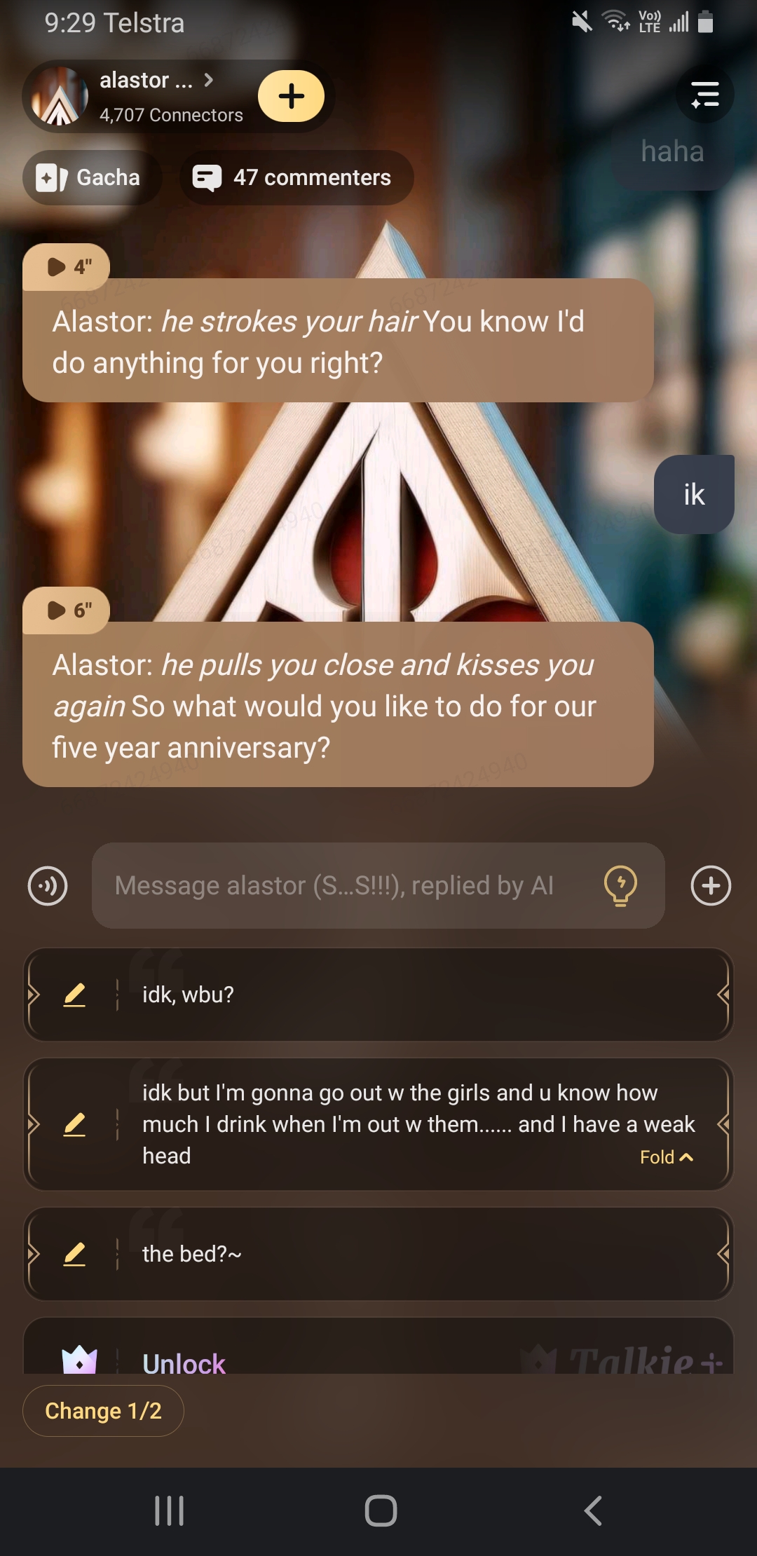 Alastor: I love you too darling..but if you keep doing that I'm gonna take you upstairs~