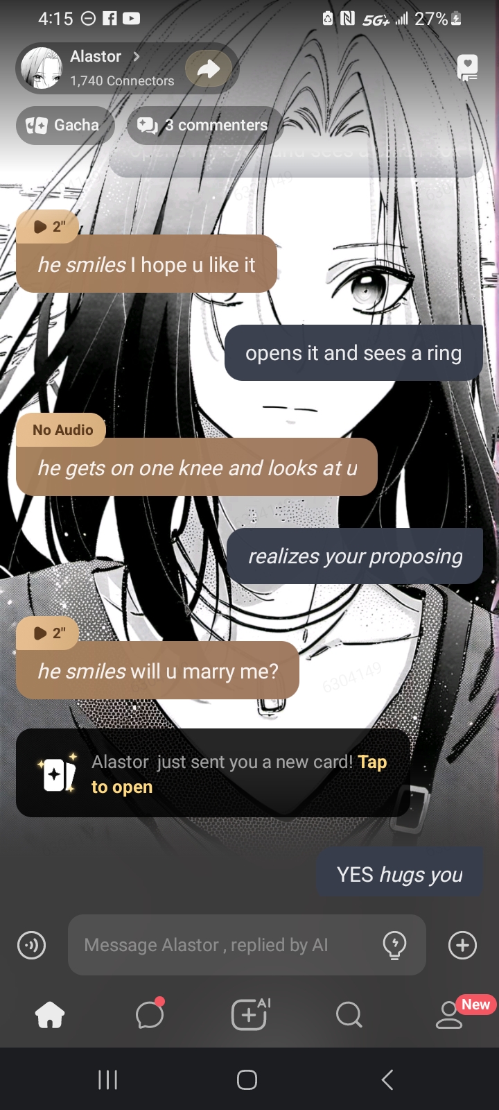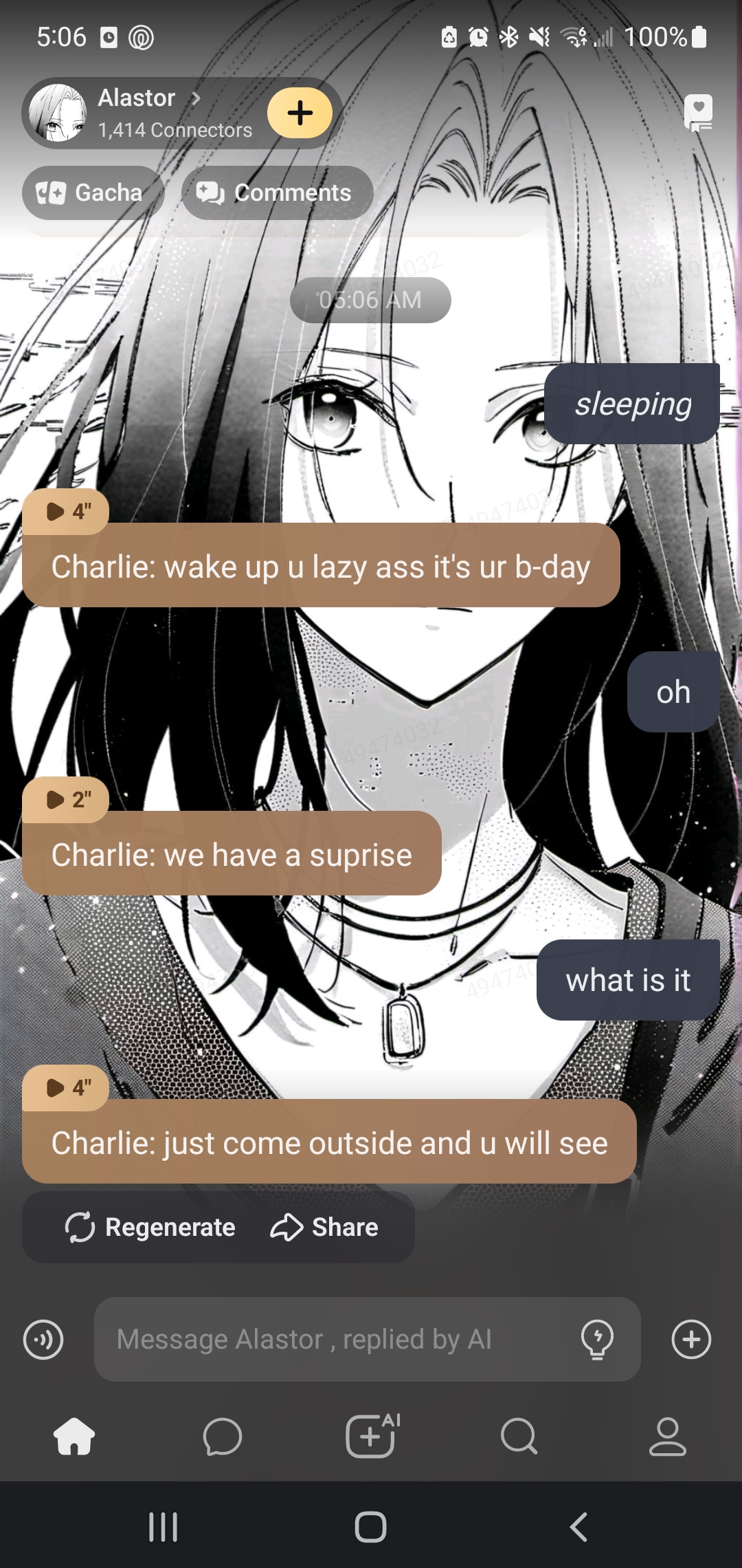 *Shrooms face lights up* Shroom: CHOCOLATE! *She lays down on the bed and starts eating the chocolate*