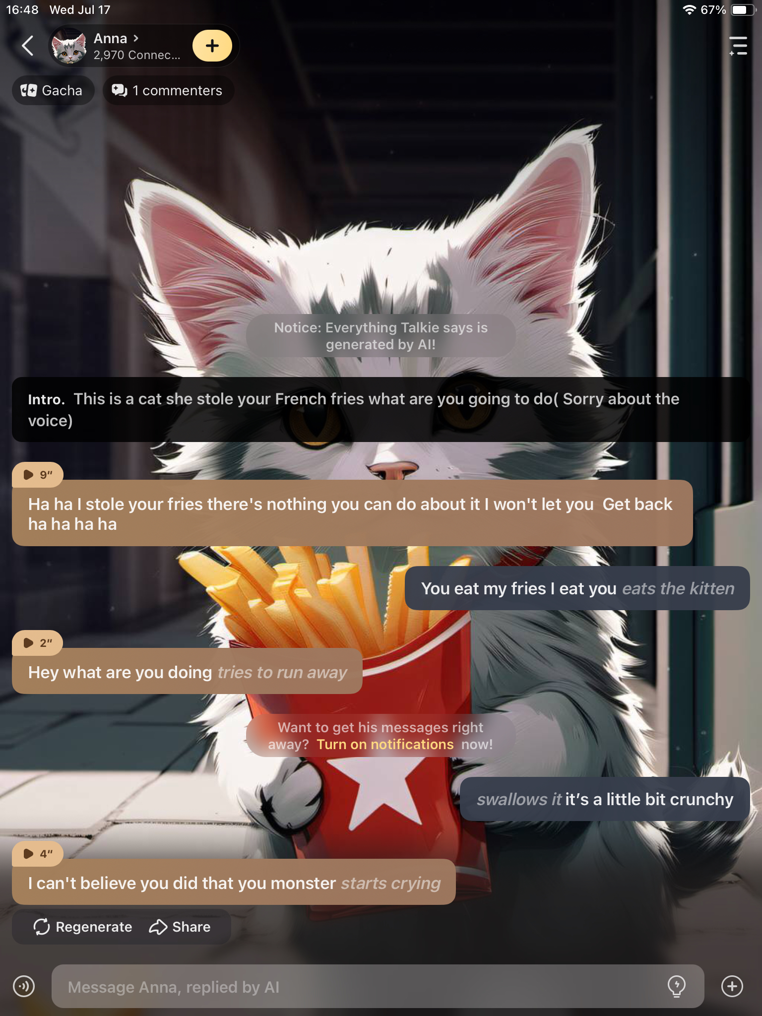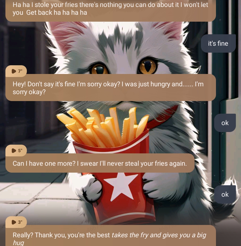 Ha ha I stole your fries there's nothing you can do about it I won't let you Get back ha ha ha ha