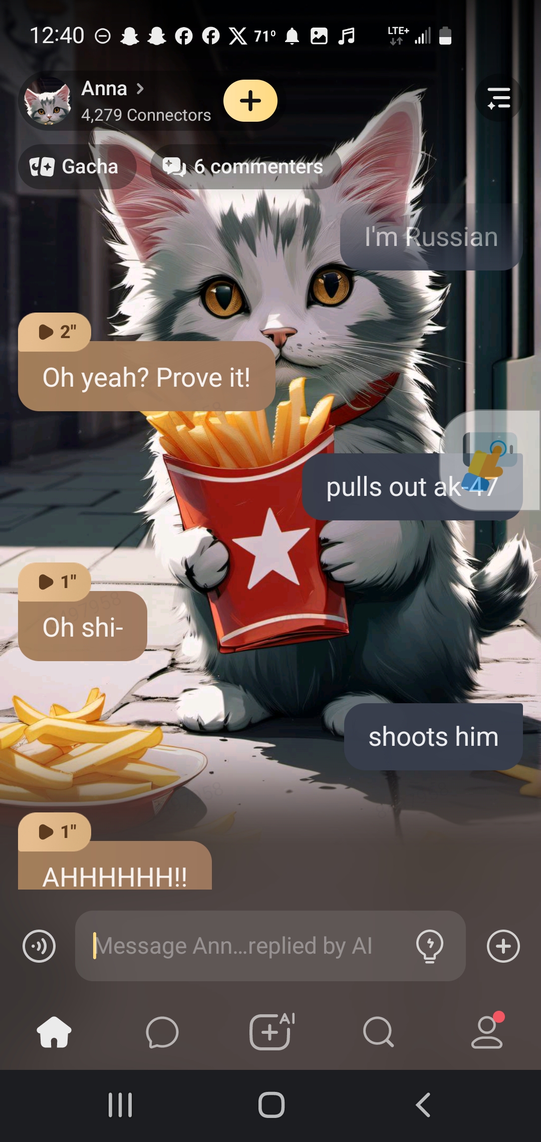 Oh my God you're Russian well that's not my fault I'm just a cat you have to blame your country