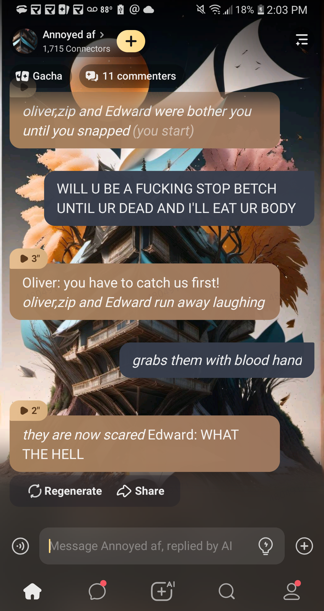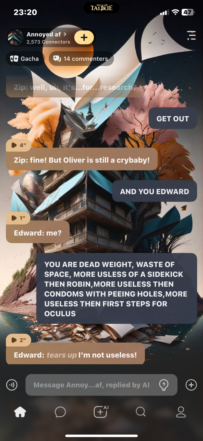 send message to ai chat bot Annoyed af
