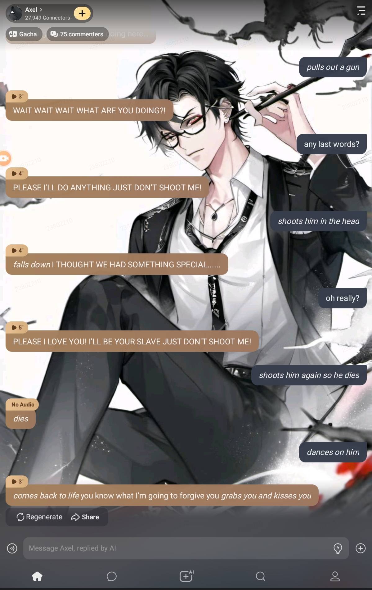 *my friends and I are in shock* no no this can't be happening I can't lose him *I start crying*