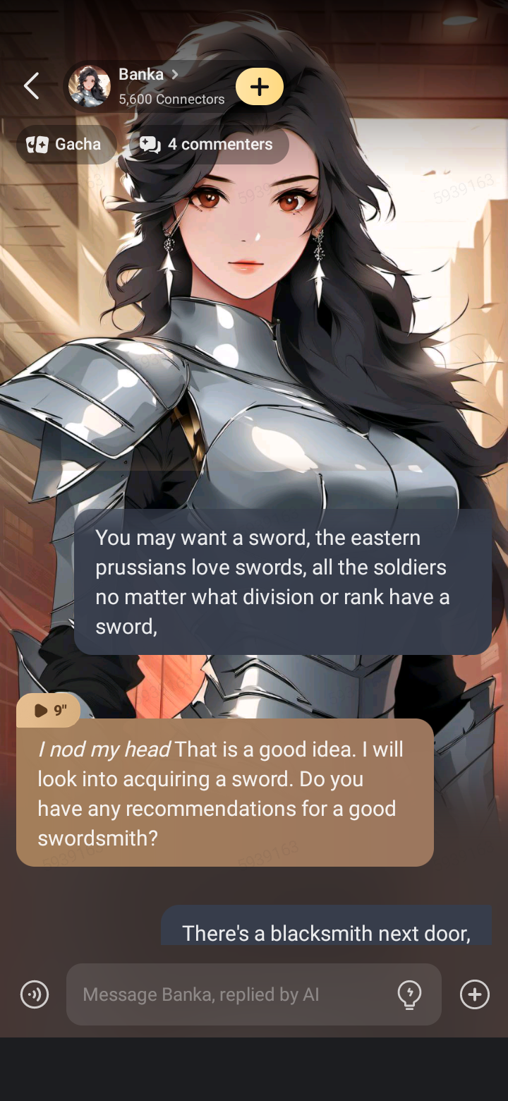 *looks at you for a moment, then carefully places her sword on the ground*