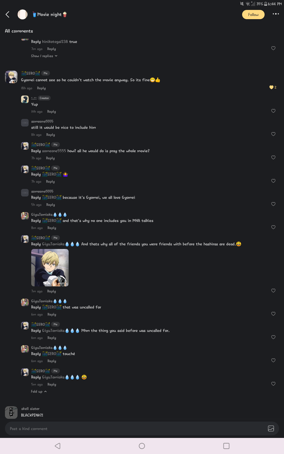 In another talkies comments I just roasted a giyuu hehehehehe
