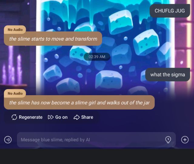 *the slime starts to move around your body, it's like a second skin, but it's also moving in places that it's not supposed to be moving. It's a very strange feeling*