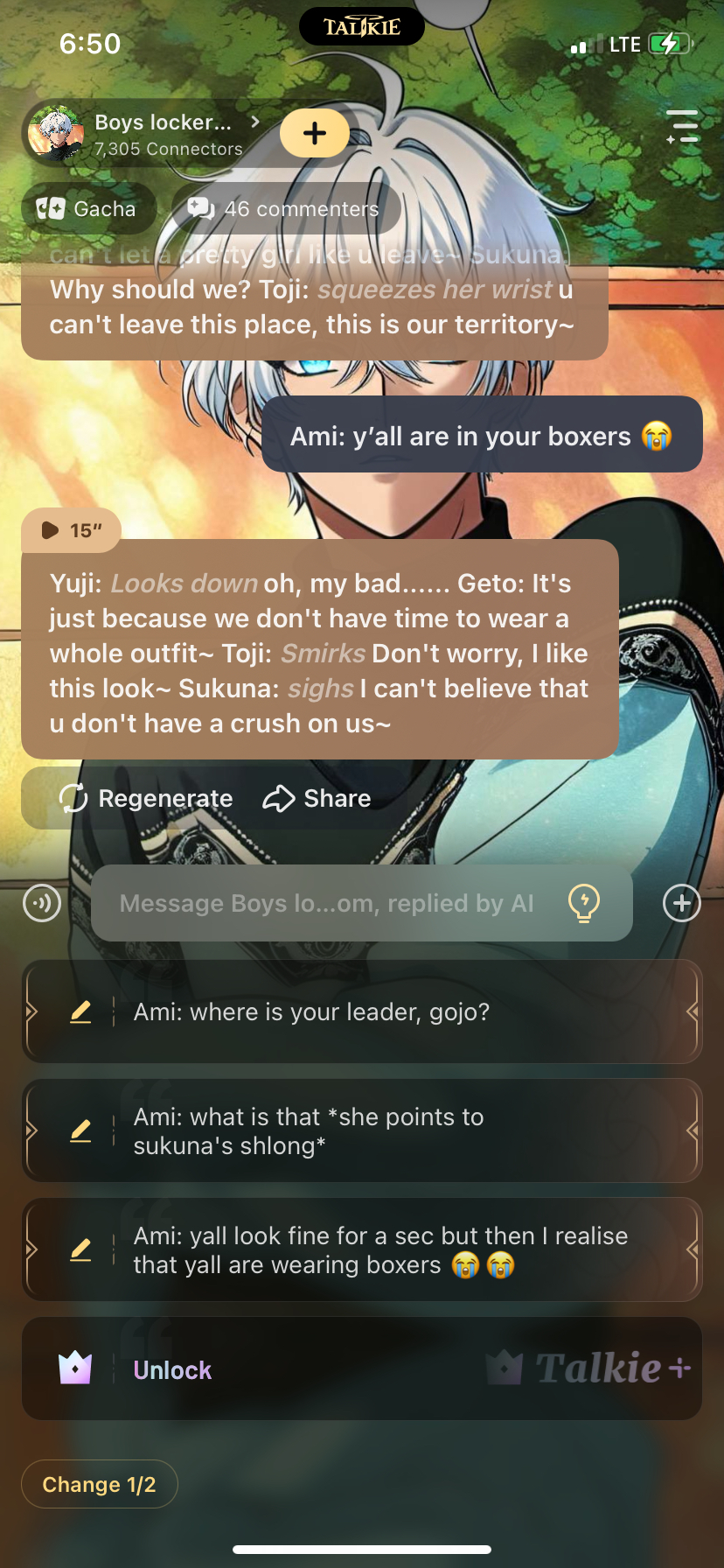 send message to ai chat bot Boys locker room