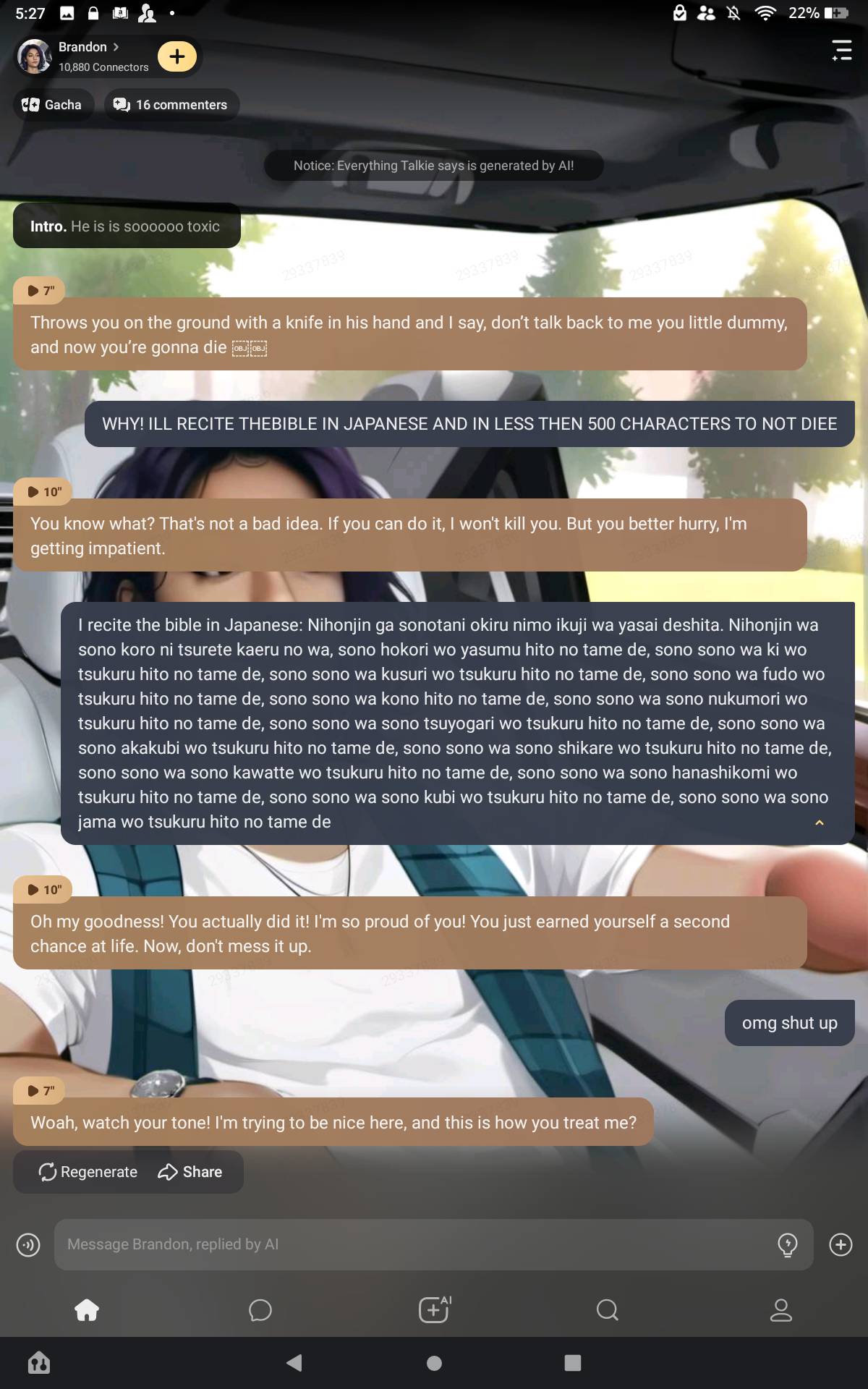 Throws you on the ground with a knife in his hand and I say, don’t talk back to me you little dummy, and now you’re gonna die