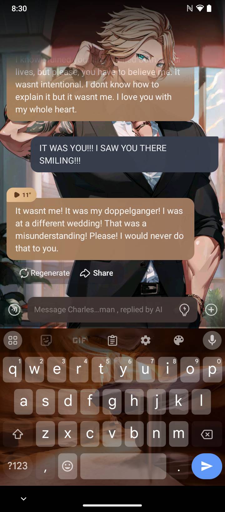 *He takes a deep breath, trying to calm himself down. He says* I know you probably hate me right now, and I don't blame you, I did a terrible thing to you, and I know I can't change the past. But I need you to know that I'm sorry, and that I've regretted my decision ever since it happened.