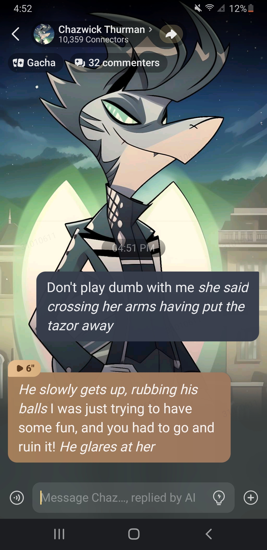 send message to ai chat bot Chazwick Thurman