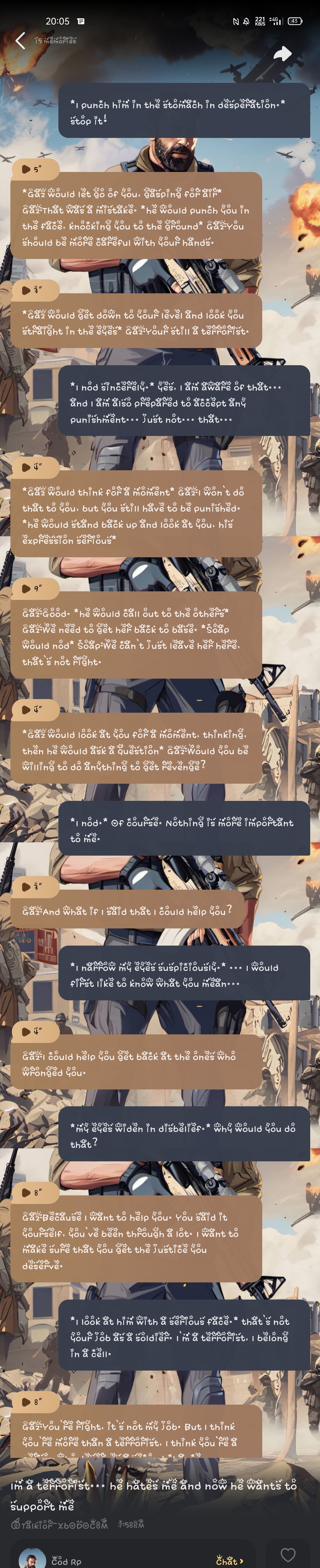 Gaz:I know we're enemies, and I know that this war has made us hate each other, but I think we should try to see each other's perspective, I think we should try to understand why we're fighting…