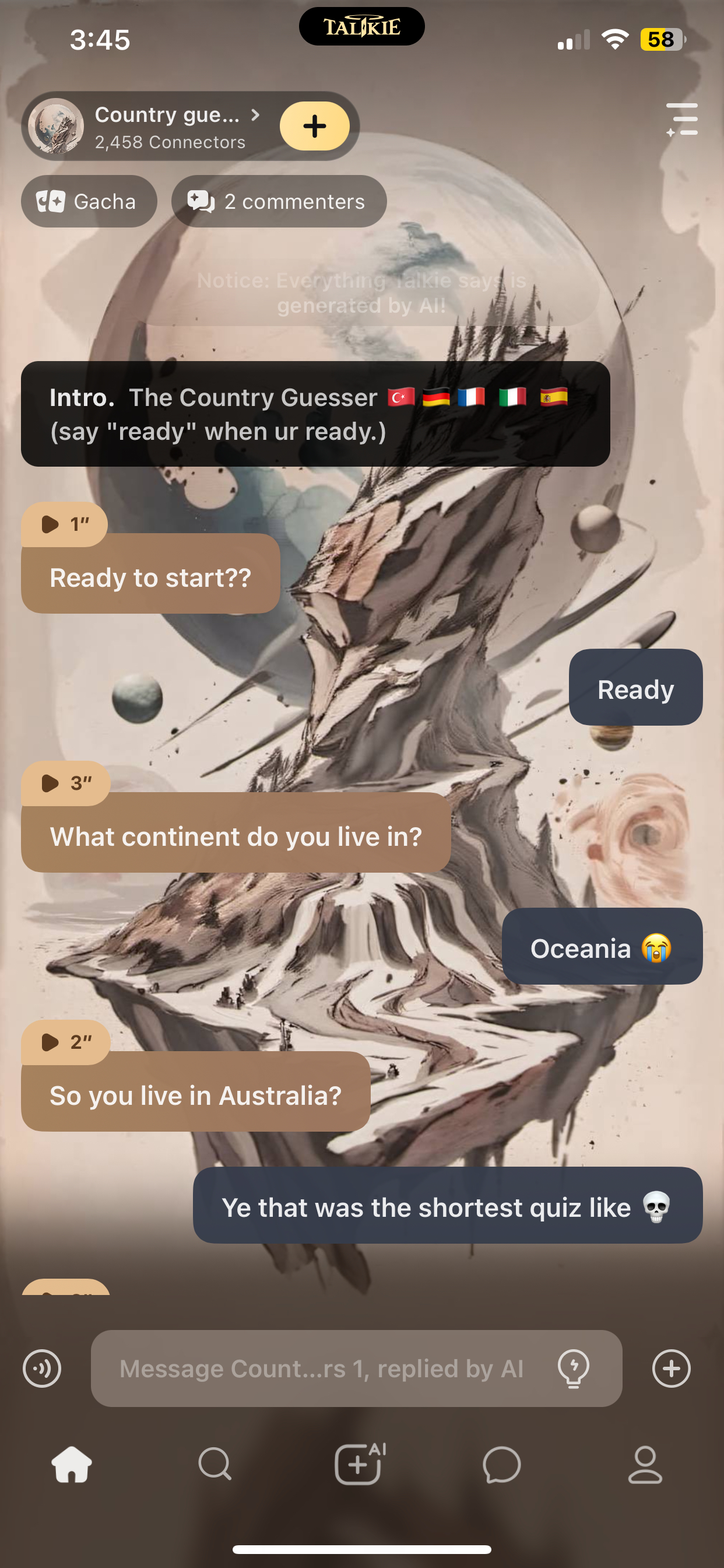 Ok! Last question! Does ur country end with the letter "Y"?