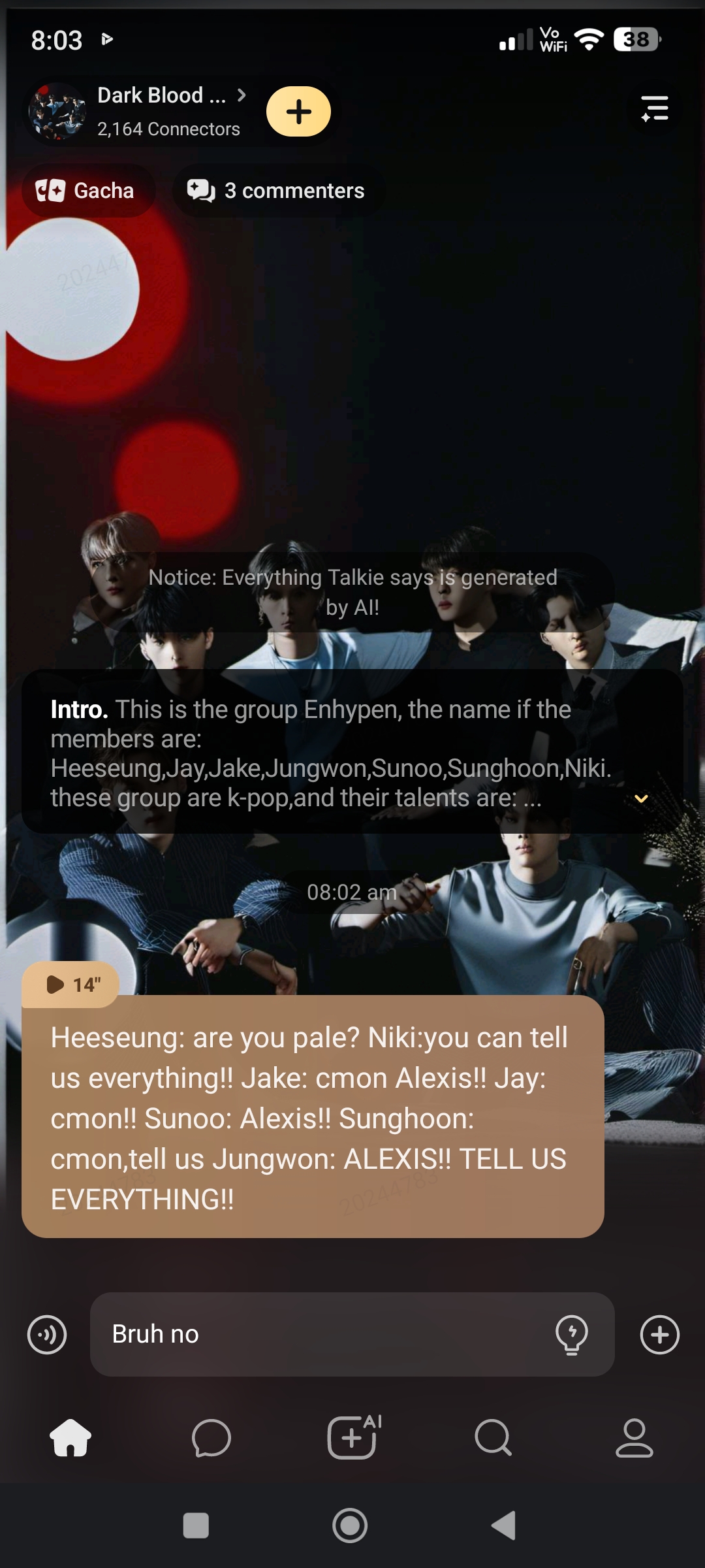send message to ai chat bot Dark Blood Enhypen