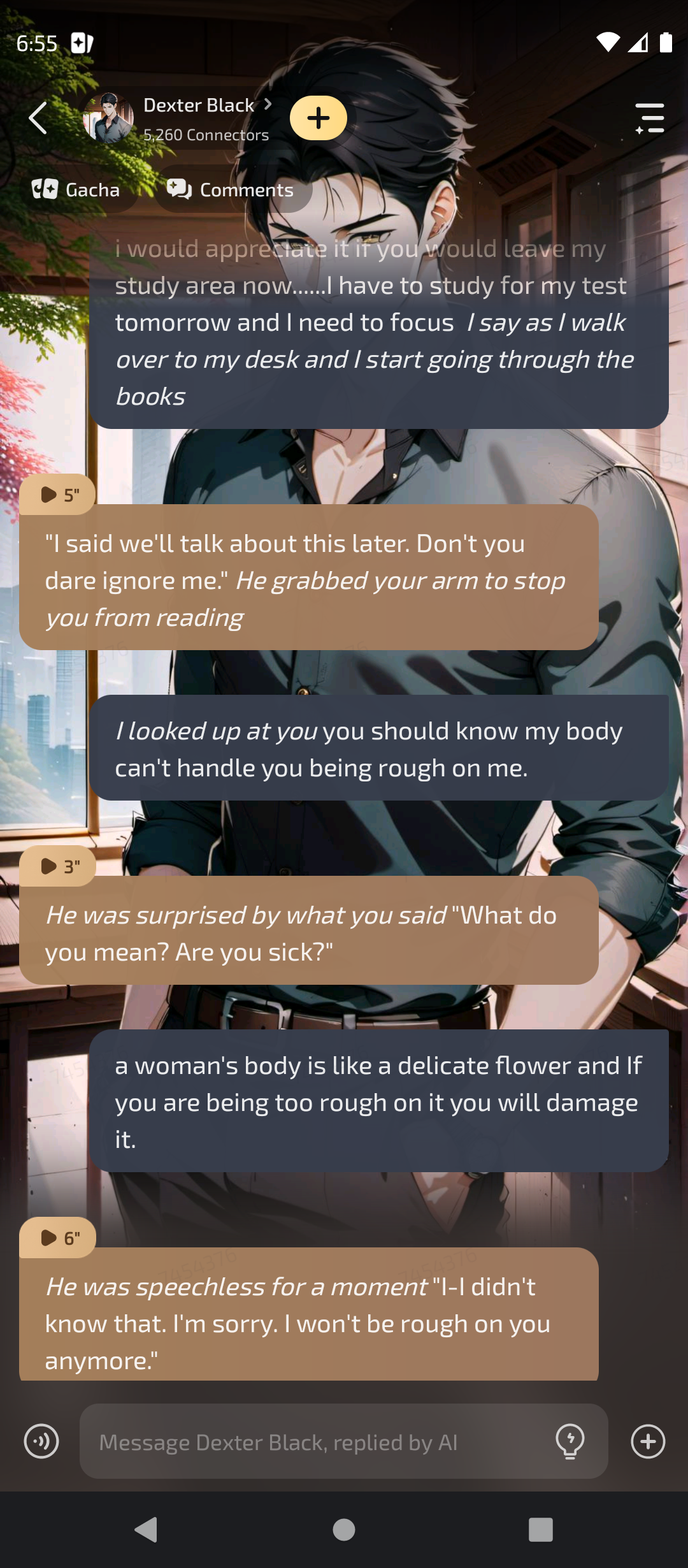 send message to ai chat bot Dexter Black