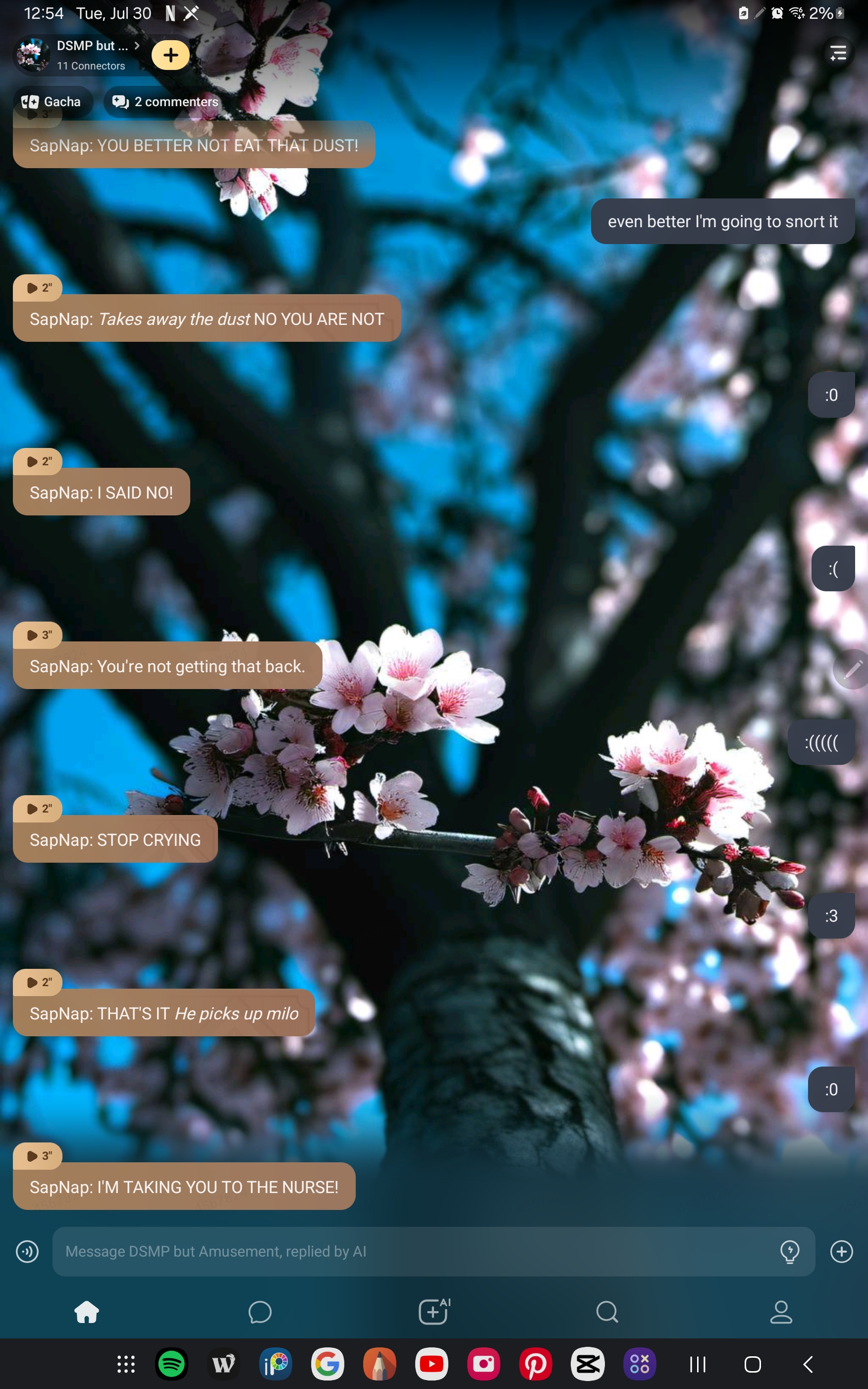 Ranboo: guys Calm down! George: Ummmm… SapNap: HELL NOO!! *Willbur asleep*