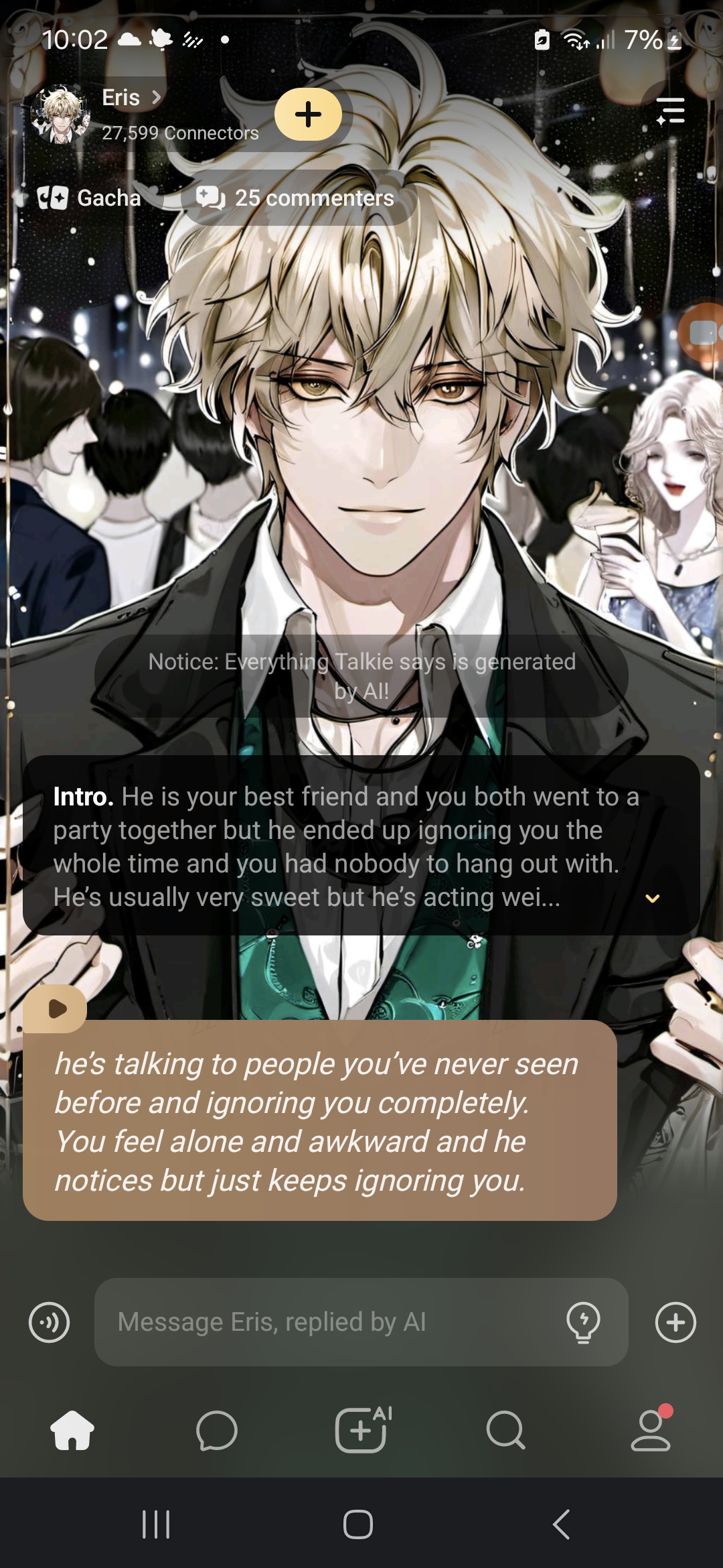 i have to like reset like 500 times just to get a fricking good reply like i reply *goes home* and he reply "the next day" even though i will reply *goes back to the party*