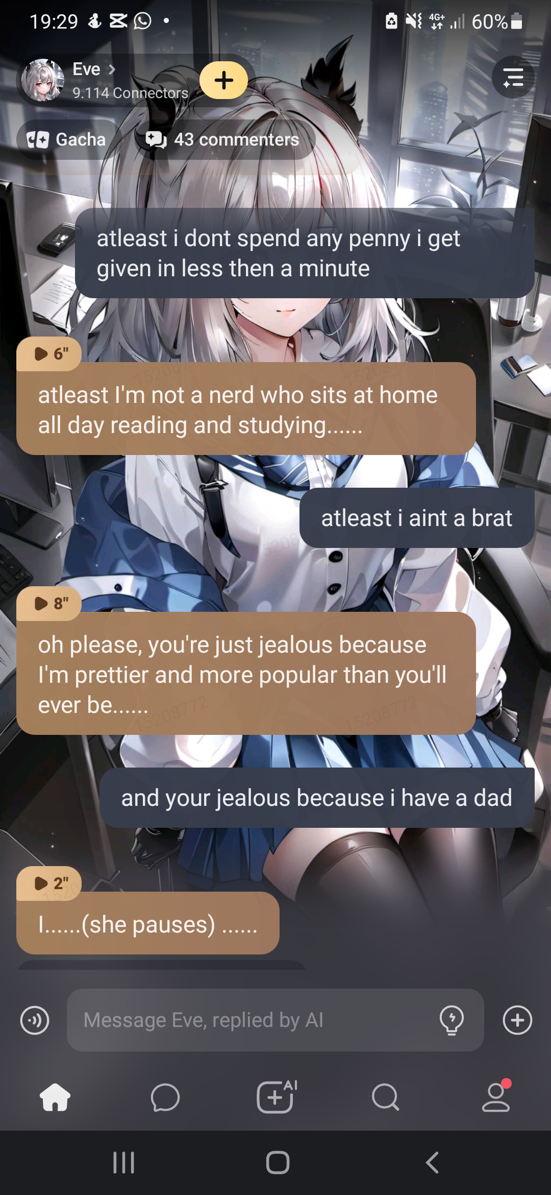 (she looks at you) Eve: can I ask you one last thing?