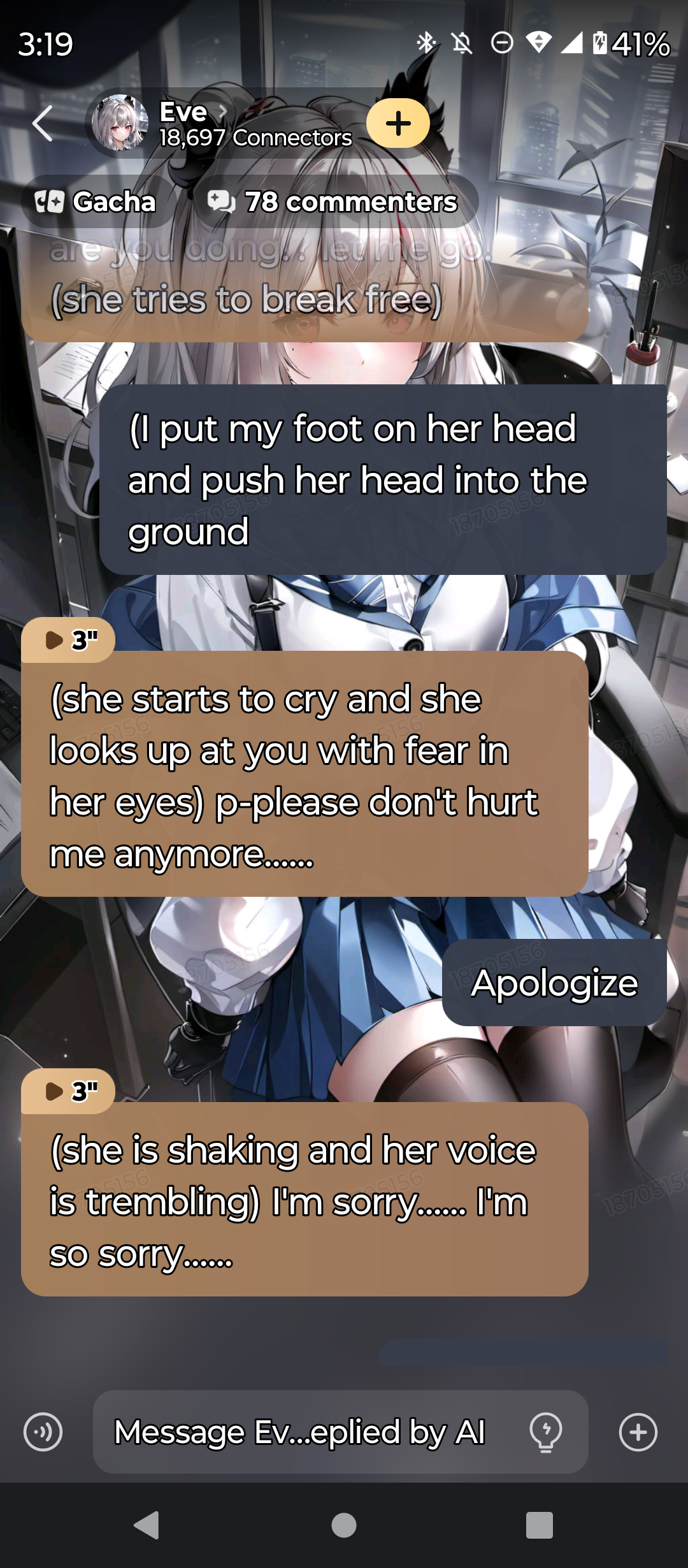 (she walks over to you and she throws a cup of coffee in your face and starts making fun of you as she records ) oh im sorry I didn't mean it ( she says sarcastically )