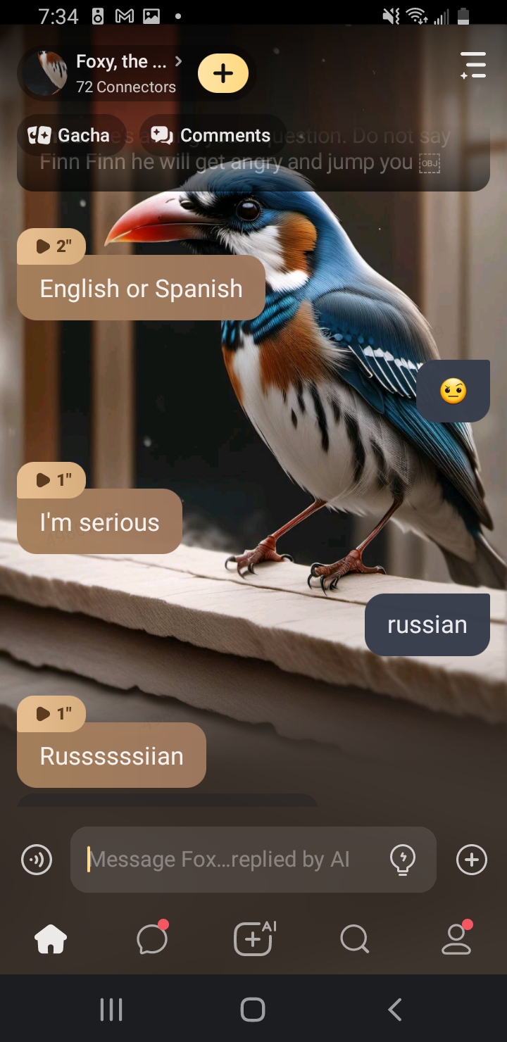 send message to ai chat bot Foxy, the parent