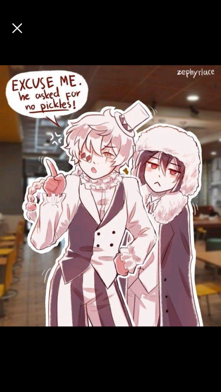 Giggles really loudly then explodes turning into a preppy dinosaur rawrs then mori appears starts singing drakes distrack then explodes Dazai flirts with sigma sigma turns into ice cream Dazai eats him and explodes fyodor turns into a arm Nikolai eats him then turns into a jester then explodes. (Best story ever)