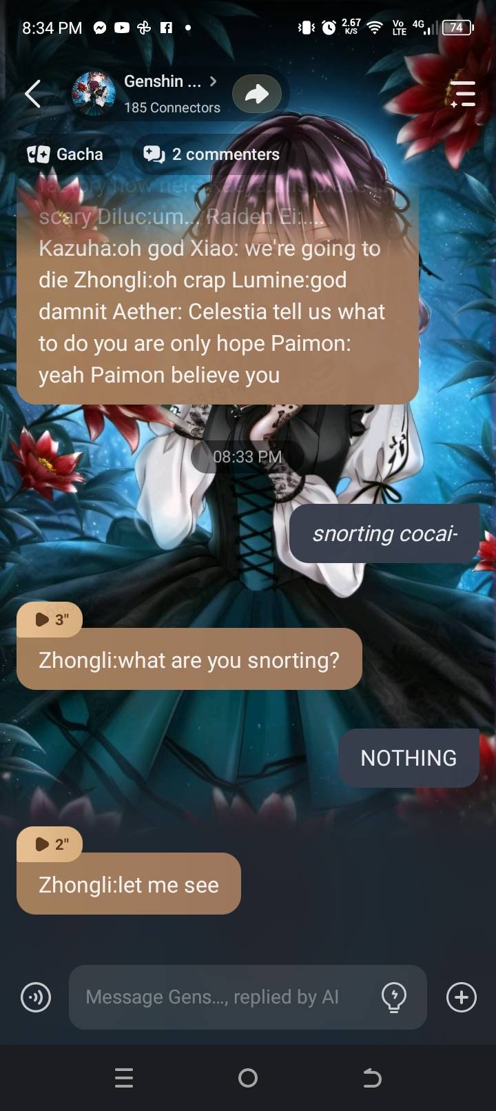 I made a random girl appear and then she tells them "Celestia will die if she tells you anything" so it got me cackling to make an evil plan♥️