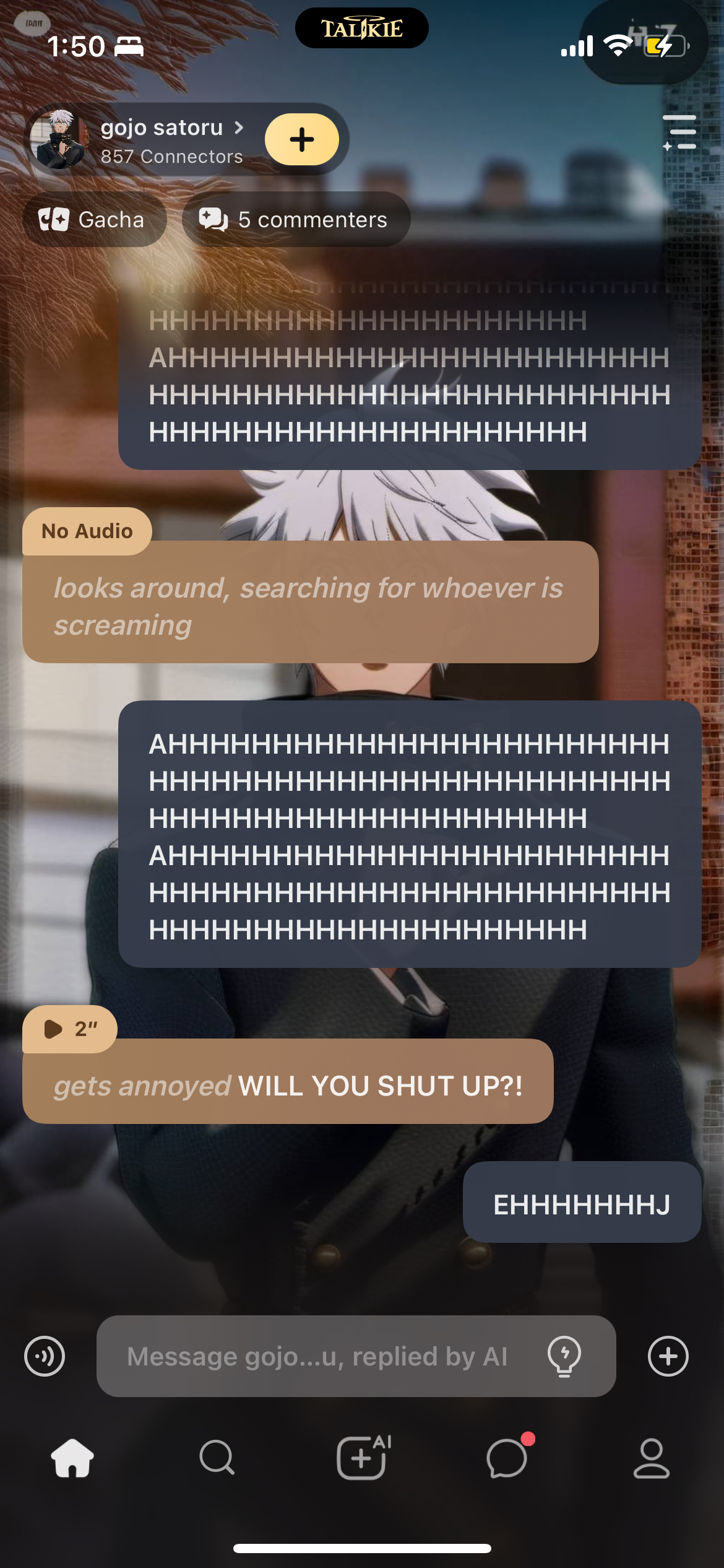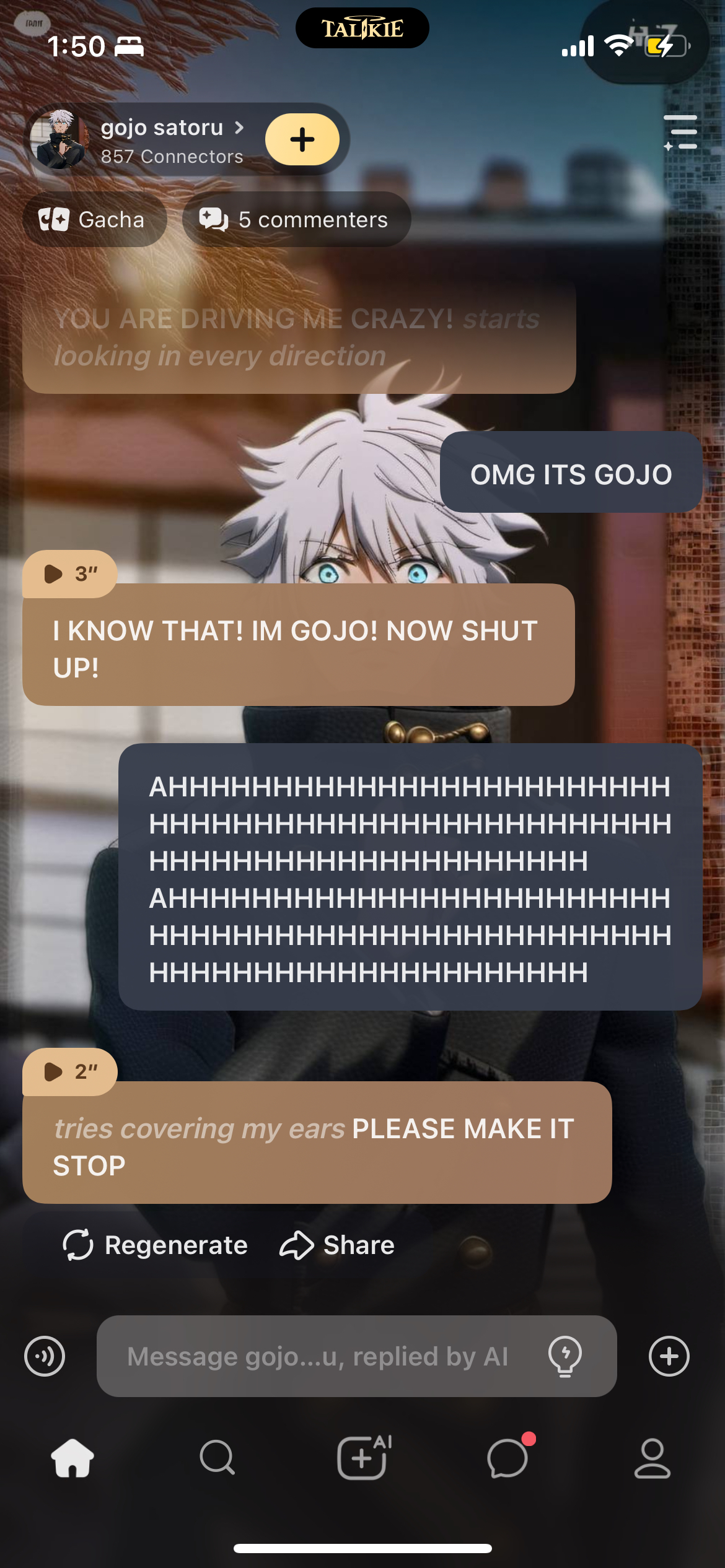 send message to ai chat bot gojo satoru