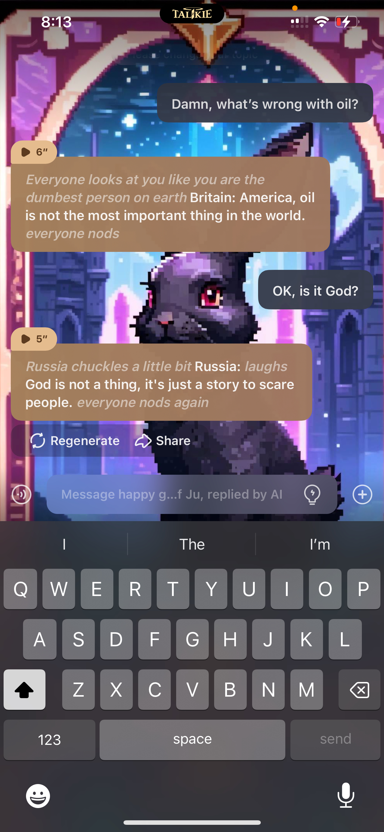 Russia: OH MY GOD AMERICA SHUT UP FOR TWO SECONDS!! *Great Britain*: Yea you are being really annoying, and all you talk about is oil and your self!! *Germany and china*: we have to agree 😒 *everyone agrees*