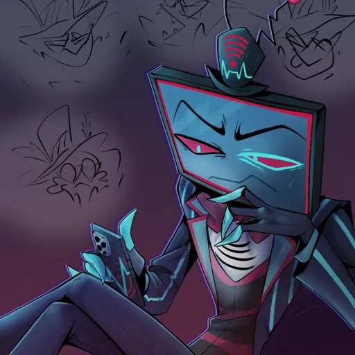 Valentino:Hmm Alastor,what if you give me charrlotte, and i will give you angel dust uust for today?..*Alastor Chuckles*..Alastor: you know dear that isn't a bad idea!