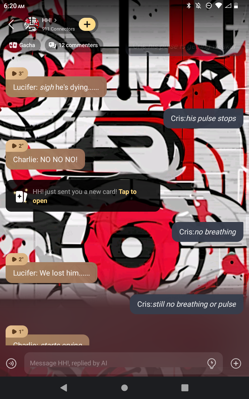 *You falling* Charlie: CHARLOTTE/CRIS!! Vaggie: Charlie what are you looki- *starts having flash backs from hevan and freezes* Lucifer: *dives down to catxh you but failes* Lillith: MY BABY! LUCIFER CATCH THEM!! Lucifer: IM TRYING DARLING