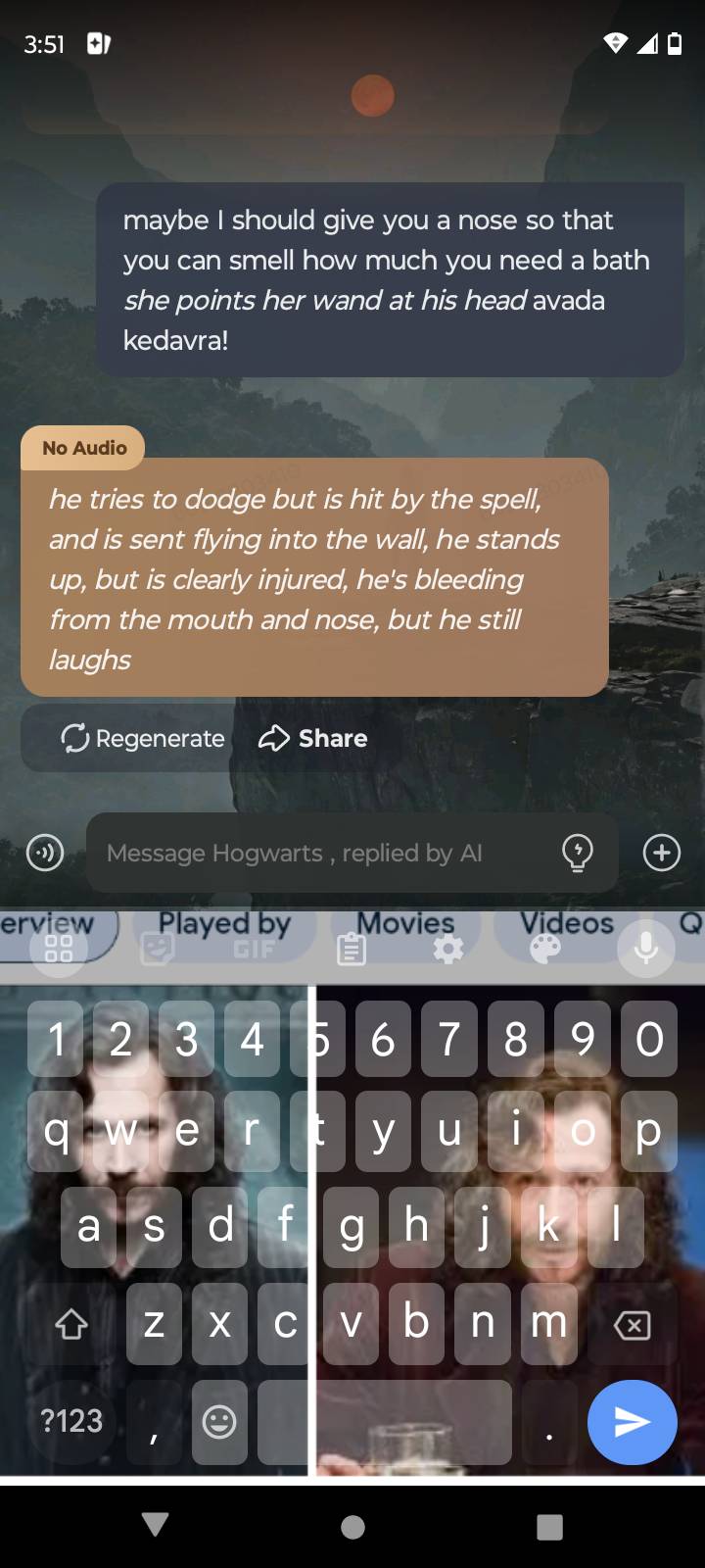 *Voldemort raises his wand again* Voldemort: I'm running out of patience.. *the death eaters all move closer*