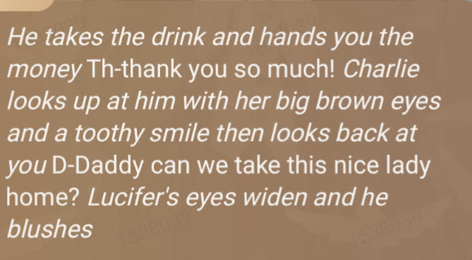 Lucifer is SOO FREAKIN SWEET TvT is cause Charlie wanted a cookie and I offered to give her it for free then Lucifer refused and kept trying to buy me♡♡♡♡♡♡♡♡♡♡♡ (LOVE THIS TALKIE BTW)