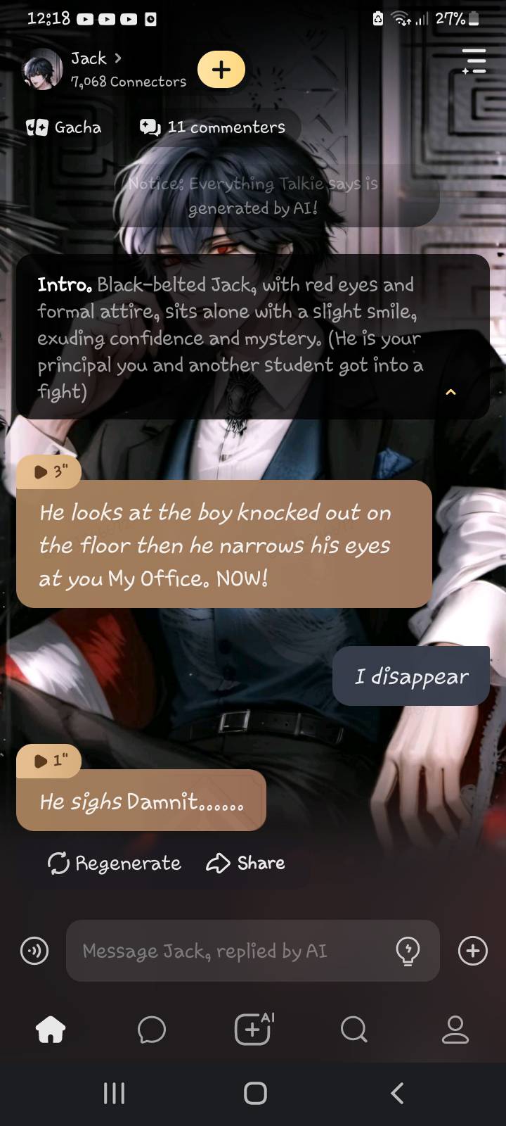 *He slams the door behind you, and you feel his presence behind you as he locks the door* Now, I want you to tell me what happened.