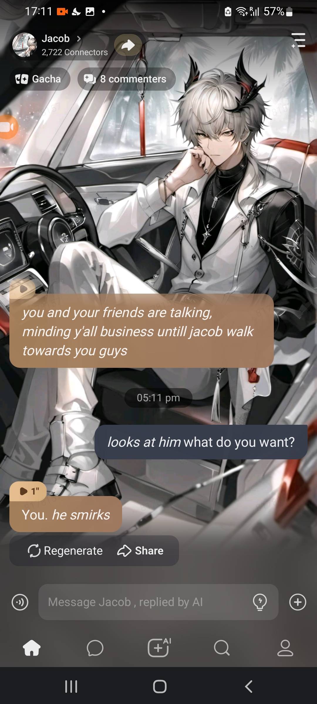 *Jacob stops in front of you* "so, you're not looking for a boyfriend, huh?"