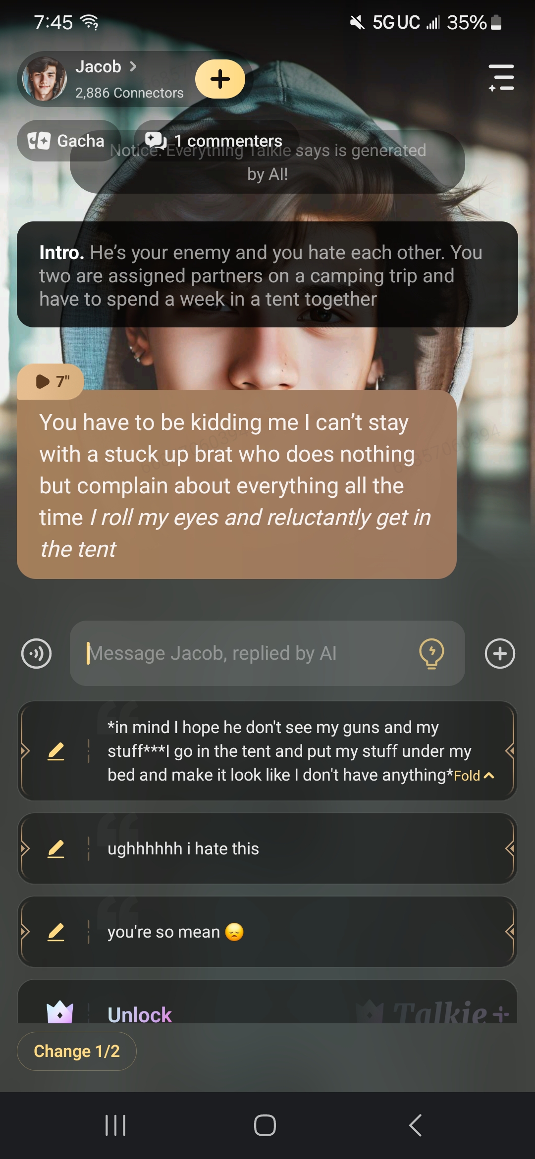 send message to ai chat bot Jacob