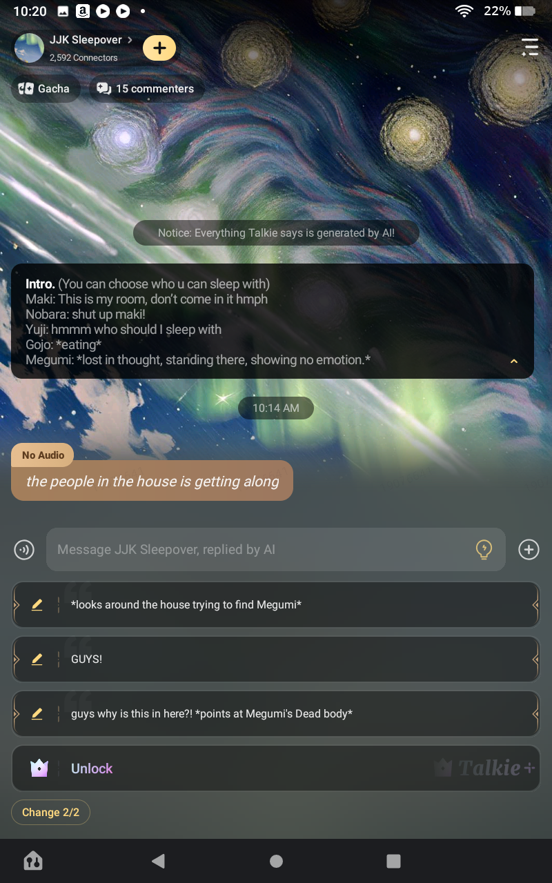 *it sounds like a little girl's voice echoing threw the woods* yuji why'd u leave me